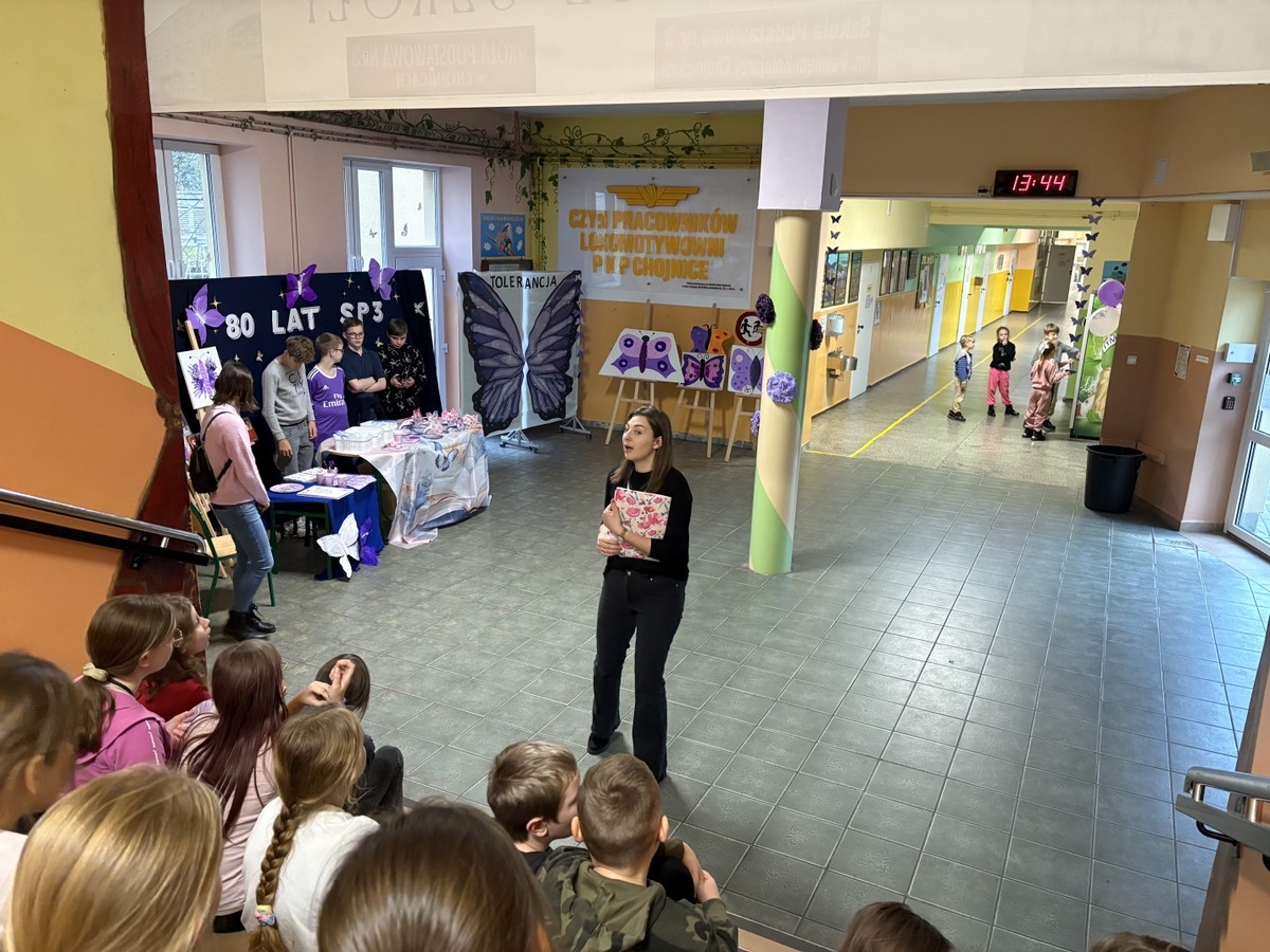 Akcja ta jest częścią programu szkolno-przedszkolnego ,,Akceptacja, Tolerancja, Lubię, Szanuje” i potrwa przez cały tydzień. W tym czasie każda klasa będzie miała okazję odwiedzić główny hol, w którym znajduje się piękna dekoracja z motylami. Motyle symbolizują delikatność, piękno i niesamowitość oraz przypominają, że każdy z nas jest inny i wyjątkowy.