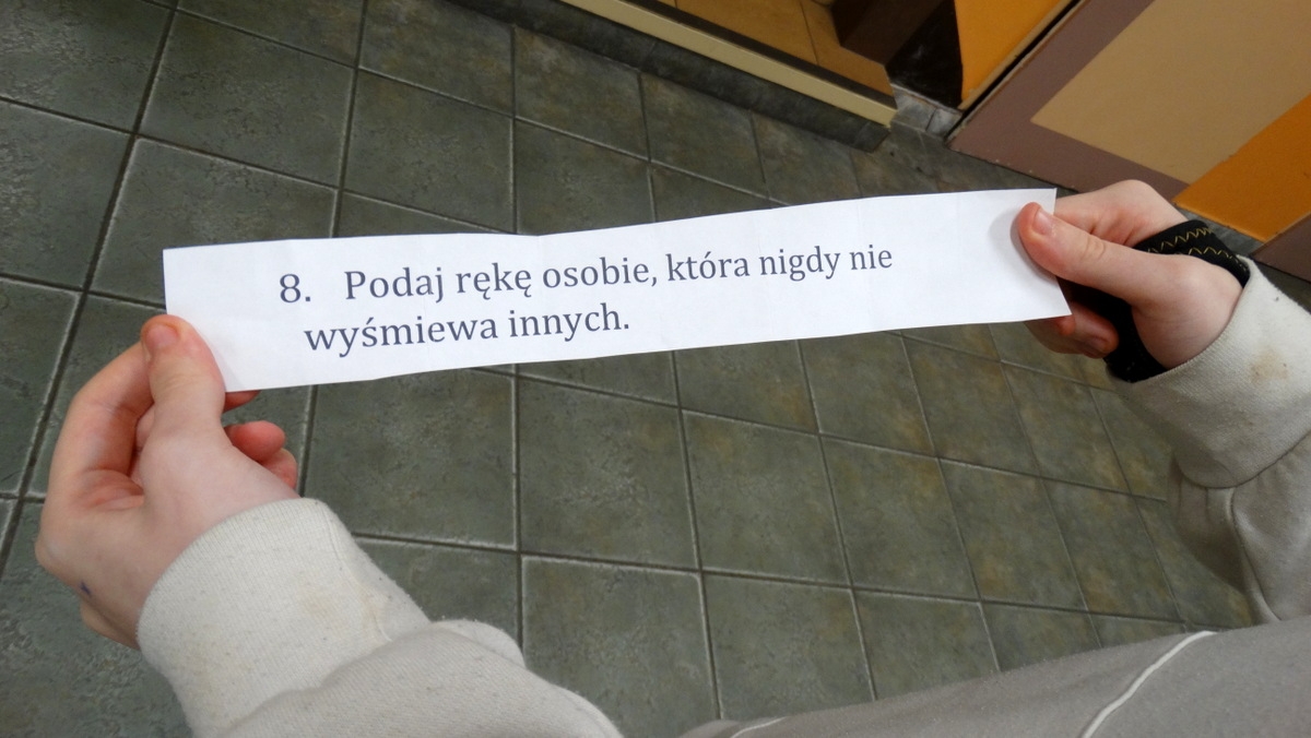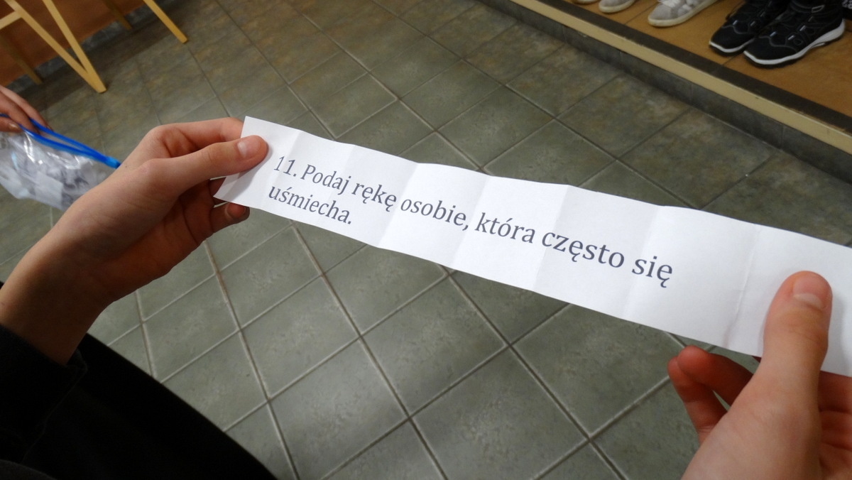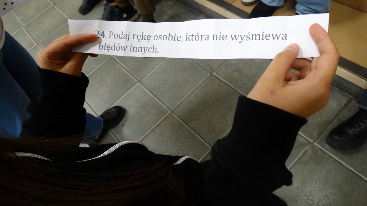 W trakcie zajęć uczniowie będą rozmawiać o tym, co dla nich oznacza tolerancja, akceptacja oraz szacunek. Wspólnie z nauczycielami będą odkrywać, że powinniśmy szanować innych bez względu na kolor oczu, pochodzenie, kulturę czy nasze upodobania. Poprzez zabawę uczniowie będą poszukiwać w swoich kolegach i nauczycielach pozytywnych cech, za które warto podziękować i z uśmiechem podać rękę.