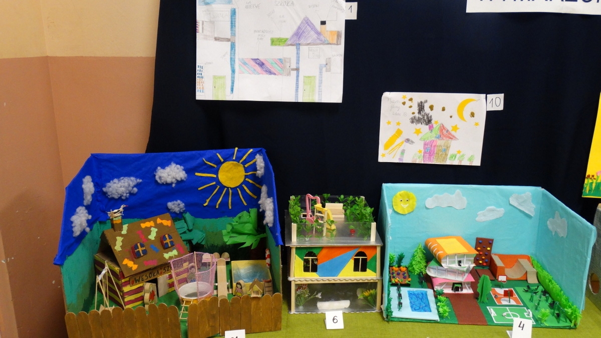 W pracach najbardziej wyróżniały się przestrzenie stworzone z myślą o zabawie i aktywności ruchowej: kolorowe place zabaw, rozległe boiska szkolne, zielone tereny wokół szkoły pełne roślin i drzew. Nie zabrakło również wyjątkowych pomysłów, takich jak ogródki warzywne, trampoliny, basen czy strefy relaksu, które uczniowie chętnie umieszczali w swoich wymarzonych projektach. Każda praca była pełna dziecięcej wyobraźni i ukazywała, jak różnorodne są marzenia o idealnym miejscu do nauki.