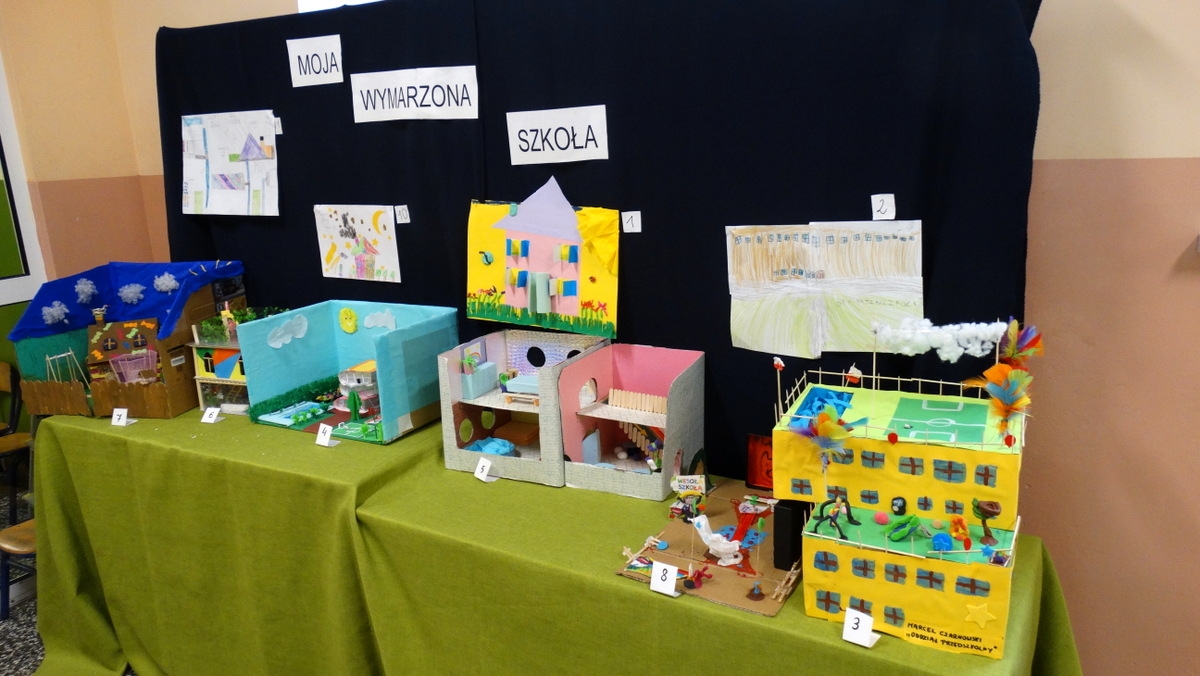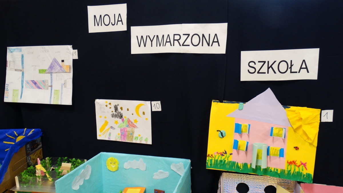 Uczniowie klas 0–3 wzięli udział w szkolnym konkursie plastyczno-technicznym „Moja wymarzona szkoła”. Zadanie polegało na stworzeniu pracy przedstawiającej idealną szkołę – taką, do której dzieci chodziłyby z radością i ciekawością każdego dnia. Młodzi artyści wykazali się ogromną kreatywnością, a ich projekty zachwyciły zarówno nauczycieli, jak i uczniów.