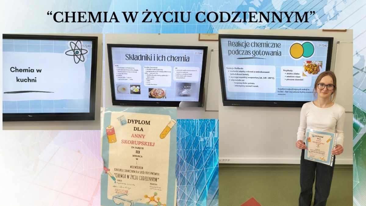 Anna Skorupska uczennica klasy 8a zajęła 3 miejsce w WOJEWÓDZKIM KONKURSIE CHEMICZNYM - ,,CHEMIA W ŻYCIU CODZIENNYM''.