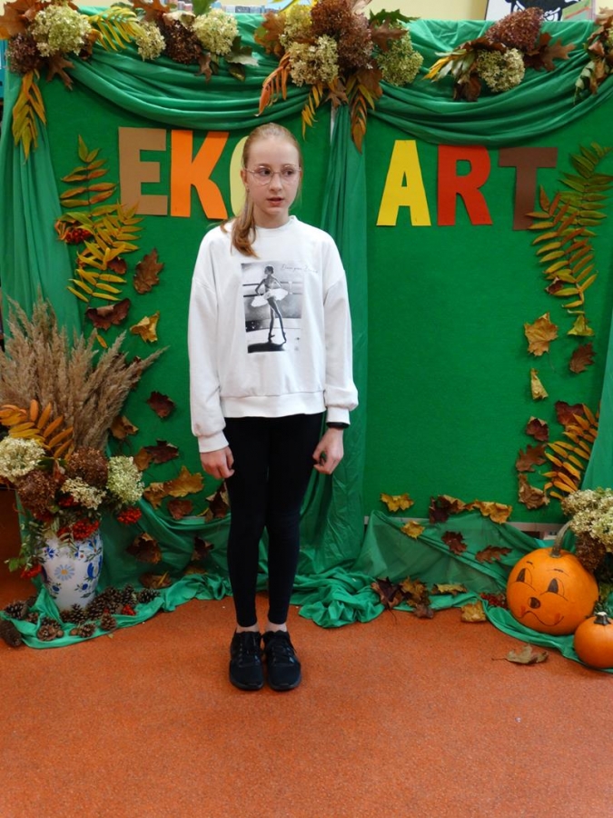 W poniedziałek , 11 października, w bibliotece szkolnej odbył się coroczny, cykliczny konkurs recytatorski Eko –Art. Zgromadzone jury w składzie: Ewa Murawska, Ewa Leszczyńska, Małgorzata Góra oraz Anna Czajkowska z wielką przyjemnością wysłuchało pięknie przygotowanych utworów o tematyce ekologiczno- przyrodniczej. Uczniowie oceniani byli w trzech kategoriach wiekowych: klasy I – III, klasy IV – VI oraz VII – VIII. Wszyscy zaprezentowali się wspaniale, więc wyłonienie zwycięzców nie było łatwym zadaniem.